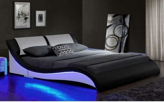 Rangka tempat tidur platform menggunakan bilah lampu RGB, yang terletak di bawah bingkai kayu di kedua sisi tempat tidur, termasuk banyak warna LED